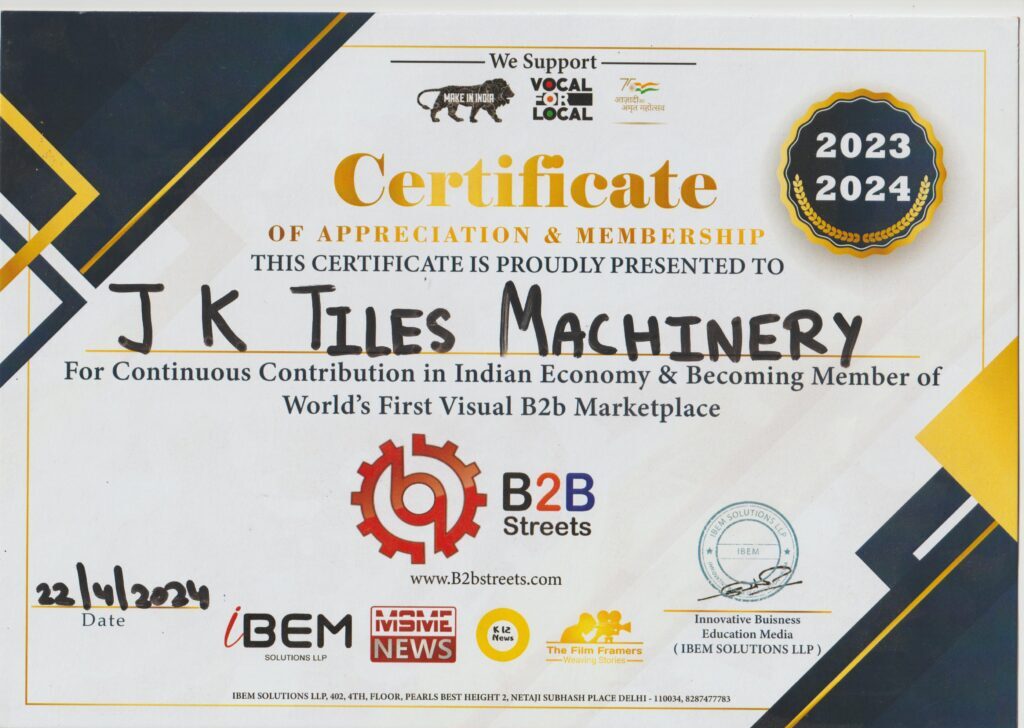 At jk tile our journey is marked by unwavering commitment to innovation, quality, and customer satisfaction. As a leading namein the machinery indus- try, we are proud to share a few milestones that reflect our dedication to excellence.